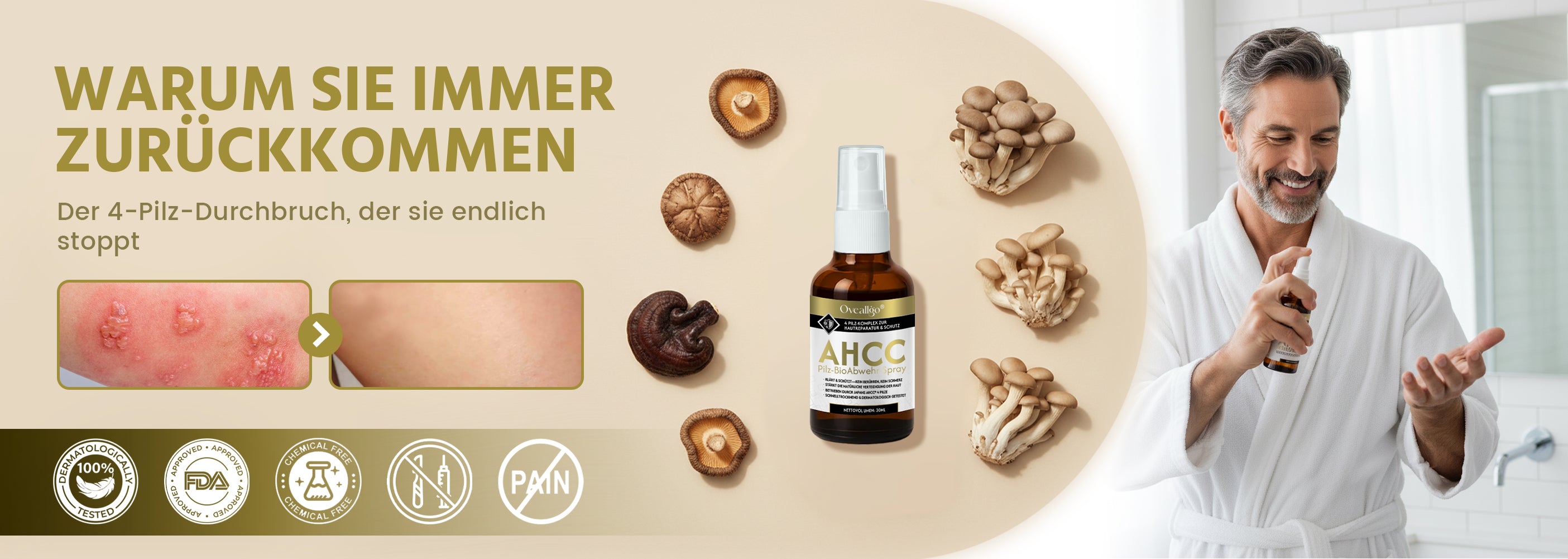 „Völlig verschwunden. Nach 4.200 Dollar und drei Jahren Leidensweg hat ein 89-Dollar-Spray mit vier Pilzen geschafft, was Dermatologen und Laser nicht konnten. Ich habe vor dem Spiegel geweint.“