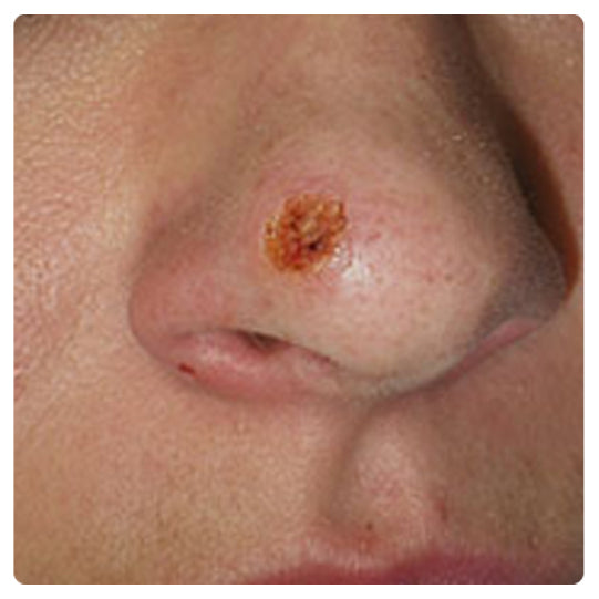 ❌Häufig am Rumpf, Hals und unter den Achseln zu finden.