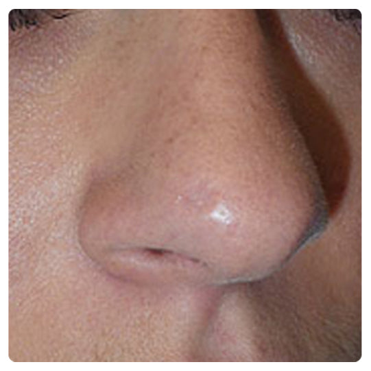 ❌Mehr auffällig aufgrund der verstärkten Pigmentierung.