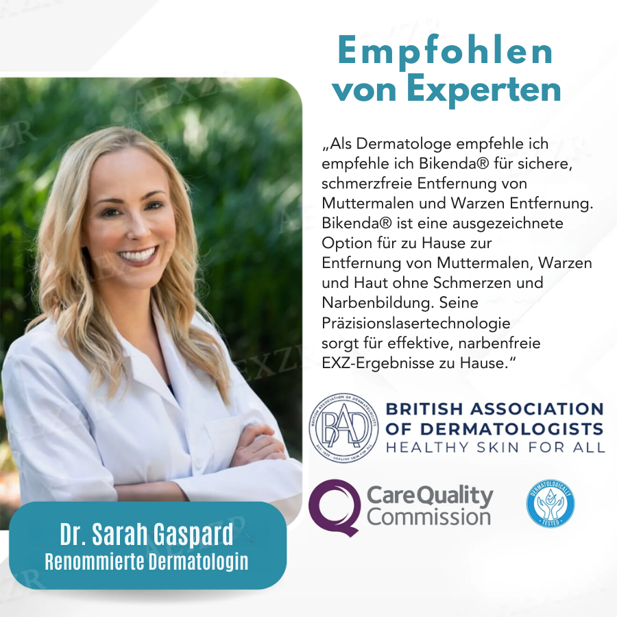 "Ich habe seit Jahren einen großen, dunklen Hautausschlag im Gesicht, der mir immer Unbehagen bereitet hat. Heute habe ich zum ersten Mal den Bikenda® PRO Laser Pen benutzt. Die Behandlung war schnell und völlig schmerzfrei. Anschließend habe ich die Haut sanft gereinigt, und es gab bisher keine Irritationen - ich bin sehr zuversichtlich für das, was noch kommen wird!"