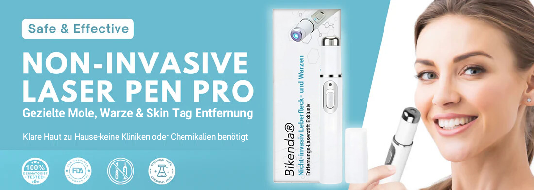 Hautanhängsel sind kleine, gutartige Wucherungen, die häufig an Stellen auftreten, an denen die Haut aneinander reibt, z. B. am Hals, unter den Achseln oder an den Augenlidern. Obwohl sie medizinisch harmlos sind, können sie Irritationen verursachen, an der Kleidung hängen bleiben oder das Selbstbewusstsein beeinträchtigen. Mit dem Bikenda® PRO Laser Pen können Sie diese unerwünschten Wucherungen sanft und sicher entfernen - ohne Schmerzen, ohne Narbenbildung, ohne Klinikaufenthalt. Gewinnen Sie Ihre glatte, reine Haut zurück und stärken Sie Ihr Selbstvertrauen mit einer schnellen, effektiven Behandlung zu Hause.
