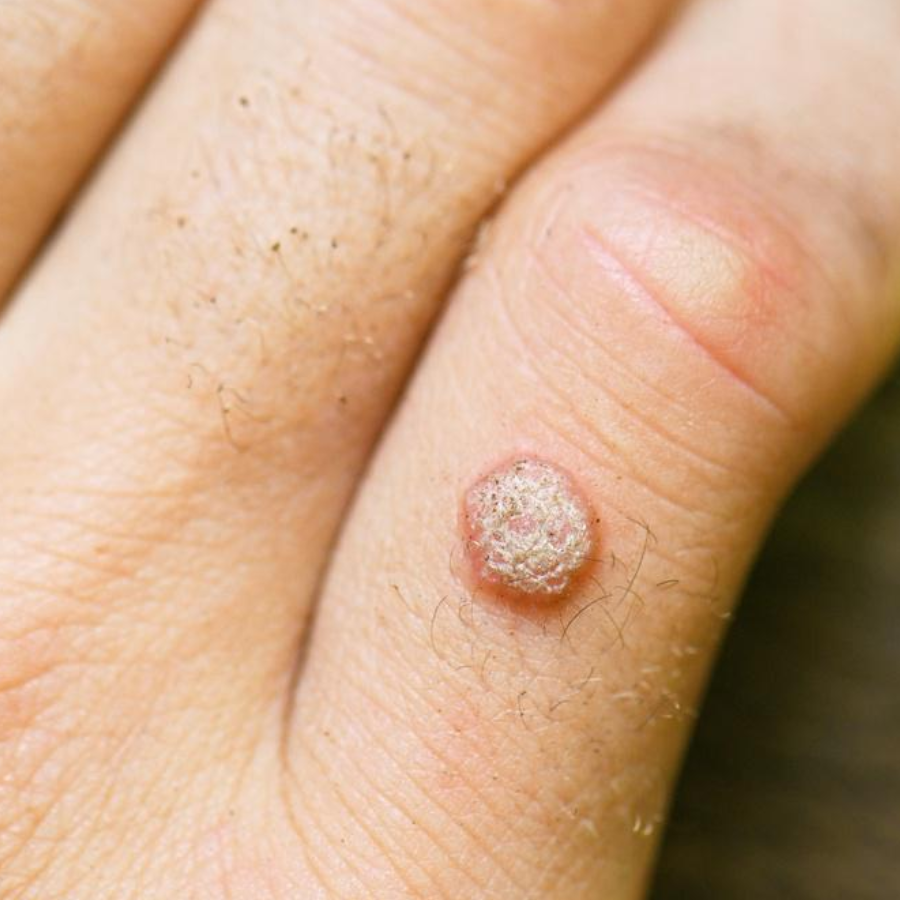 ❌ Harte, raue Wucherungen, die durch das humane Papillomavirus (HPV) verursacht werden.